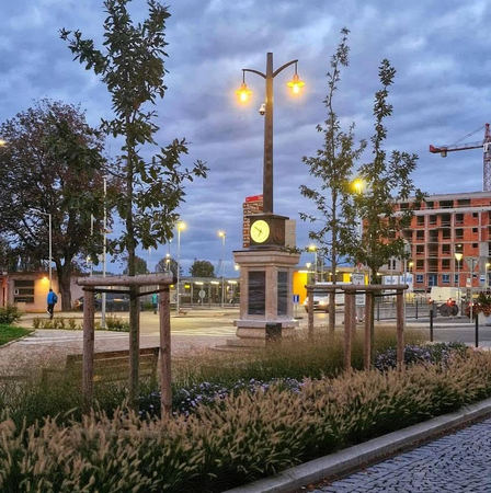 Sloupové hodiny se opět tyčí v blízkosti nádraží Kralup